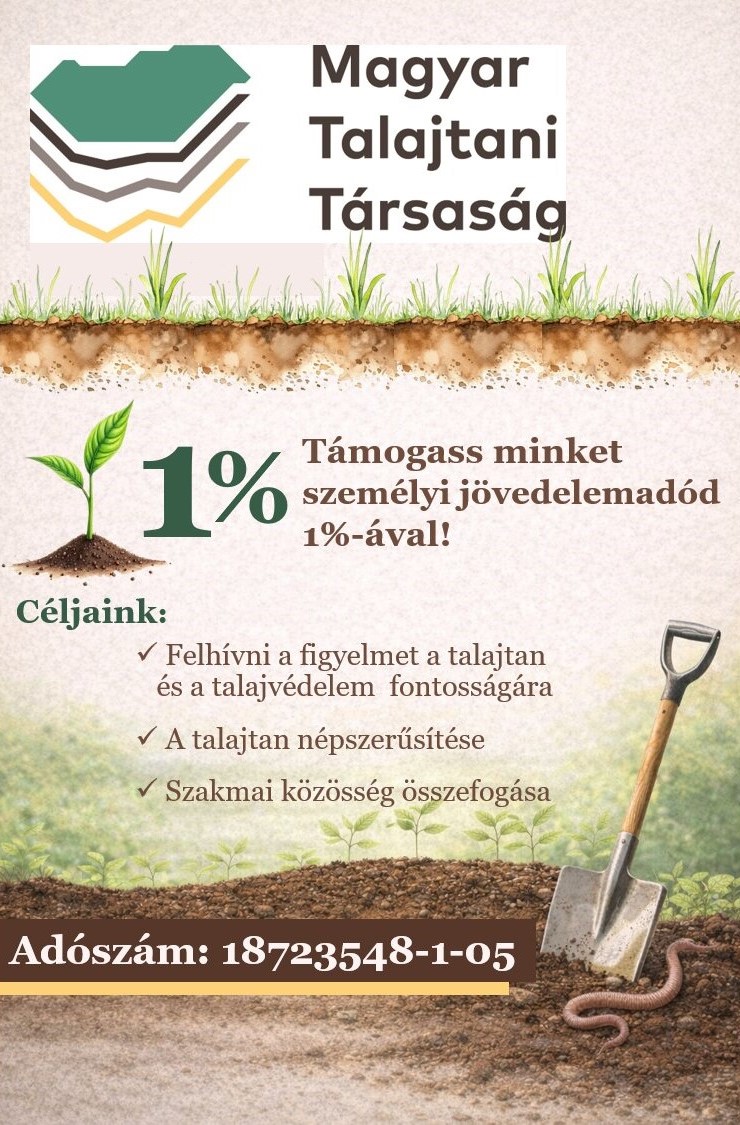 Amennyiben egyetértenek céljainkkal, és szeretnének hozzájárulni szervezetünk hatékony működéséhez, kérjük, támogassák a Magyar Talajtani Társaságot az 1% felajánlásával!
