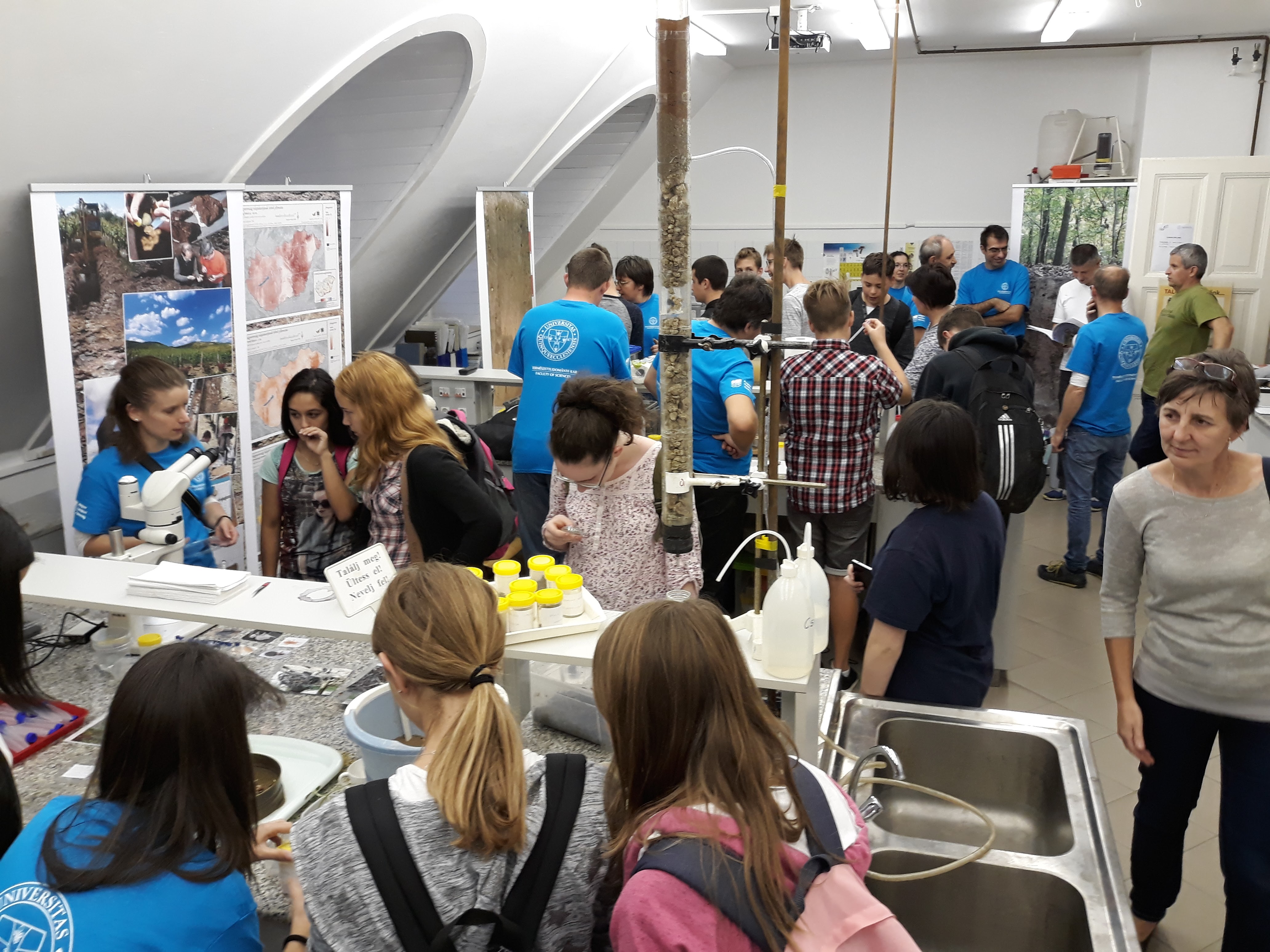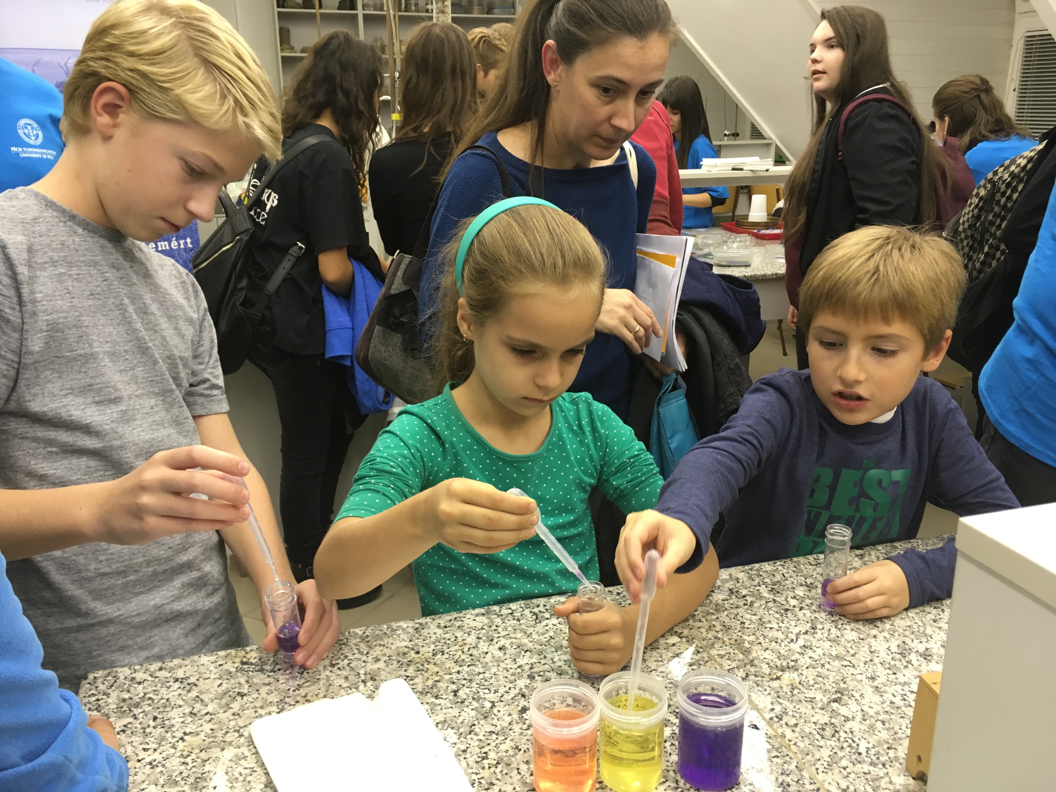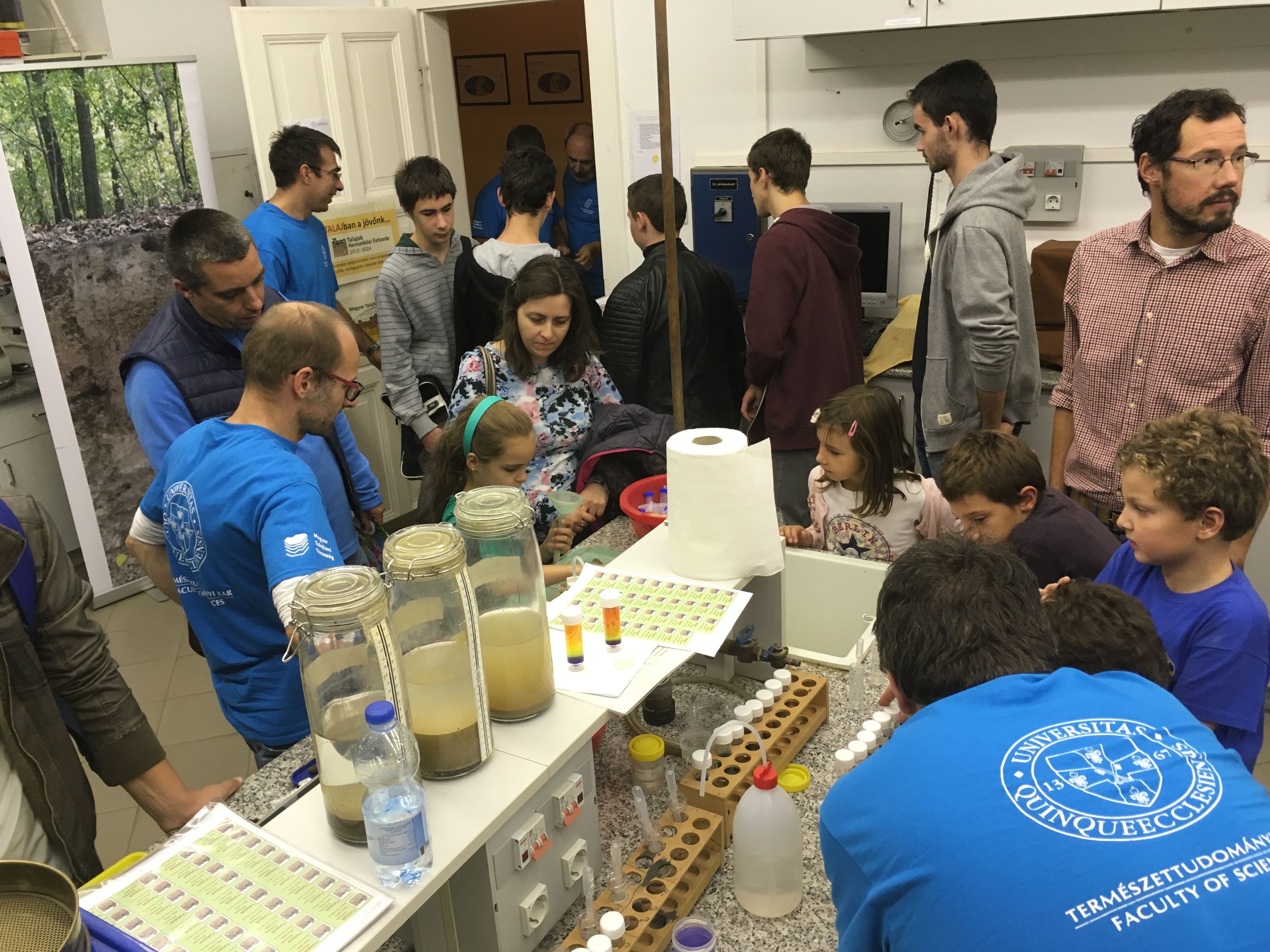 A Talajkémiai bemutatón a talajok kémiai tulajdonságaival és annak jelentőségével ismerkedhettek meg az érdeklődők, ahol mérhettek pH-t indikátorpapírral, sósavval mésztartalmat határozhattak meg, illetve szivárvány minden színét kikeverhették a különböző pH-jú vizes oldatokból.